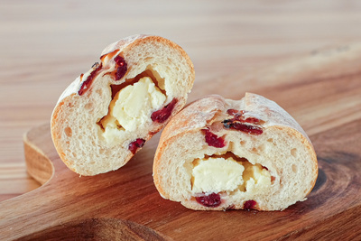 自然解凍後、あらかじめ余熱しておいたオーブンやトースターで温めてお召し上がりください。(※気温が上がってくる夏場は一晩冷蔵庫で解凍してください) パン全体に霧吹きなどで軽く水をかけてからトースターで3分~4分ほど加熱するとさっくり、もっちり出来たてのようになり美味しく召し上がれます。 厚みのあるパンは表面がこげやすいのでアルミホイルをかけて加熱してください。 ※お急ぎの場合は、電子レンジ600Wで20秒ほど温めから、オーブントースターで温めてください。
