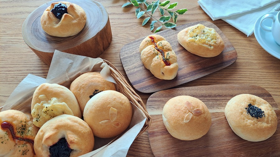 ウインナーパン:米粉(岡山県産)、ウインナー、きび砂糖、こめ油、パン酵母、コーンスターチ、塩、ケチャップ、パセリ/増粘剤(サイリウムハスク)、ベーキングパウダー(アルミフリー)、トレハロース、乳化剤(ショ糖脂肪酸エステル)、リン酸塩(Na)、調味料(アミノ酸)、酸化防止剤(ビタミン C)、発色剤(亜硝酸Na)、(一部に豚肉を含む) チーズクッペ:米粉(岡山県産)、チーズ、きび砂糖、こめ油、パン酵母、コーンスターチ、塩、パセリ/増粘剤(サイリウムハスク)、ベーキングパウダー(アルミフリー)、トレハロース、乳化剤、セルロース、(一部に乳成分を含む) クリームチーズ(ブルーベルージャム):米粉(岡山県産)、きび砂糖、クリームチーズ、こめ油、ブルーベリージャム、パン酵母、コーンスターチ、塩/増粘剤(サイリウムハスク)、ベーキングパウダー(アルミフリー)、トレハロース、乳化剤、ゲル化剤(増粘多糖類)、酸味料、(一部に乳成分を含む) こしあんぱん:こしあん(小豆(北海道十勝産)、砂糖、でん粉、食塩)、米粉(岡山県産)、きび砂糖、こめ油、パン酵母、コーンスターチ、塩、豆乳/増粘剤(サイリウムハスク)、ソルビトール、ベーキングパウダー(アルミフリー)、トレハロース、乳化剤(ショ糖脂肪酸エステル)、(一部に大豆、ごまを含む) クリームパン:フラワーペースト(国内製造)、米粉(岡山県産)、きび砂糖、こめ油、パン酵母、コーンスターチ、塩、アーモンド、豆乳/増粘剤、ソルビトール、ベーキングパウダー(アルミフリー)、トレハロース、乳化剤(ショ糖脂肪酸エステル)、グリシン、安定剤(ローカスト)、香料、保存料(ソルビン酸K)、ph調整剤、カロチノイド色素、(一部に卵、乳成分、大豆、アーモンドを含む)