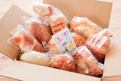 15個前後のパンをお詰めしてお送りいたします。 食パンが入る場合は5枚又は6枚切りの厚さでお送りいたします。 ※同じ商品が2個入る場合もございます。 ※パンの内容はご指定できかねます。