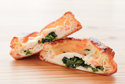 自然解凍後、あらかじめ余熱しておいたオーブンやトースターで温めてお召し上がりください。(※気温が上がってくる夏場は一晩冷蔵庫で解凍してください) パン全体に霧吹きなどで軽く水をかけてからトースターで3分~4分ほど加熱するとさっくり、もっちり出来たてのようになり美味しく召し上がれます。 厚みのあるパンは表面がこげやすいのでアルミホイルをかけて加熱してください。