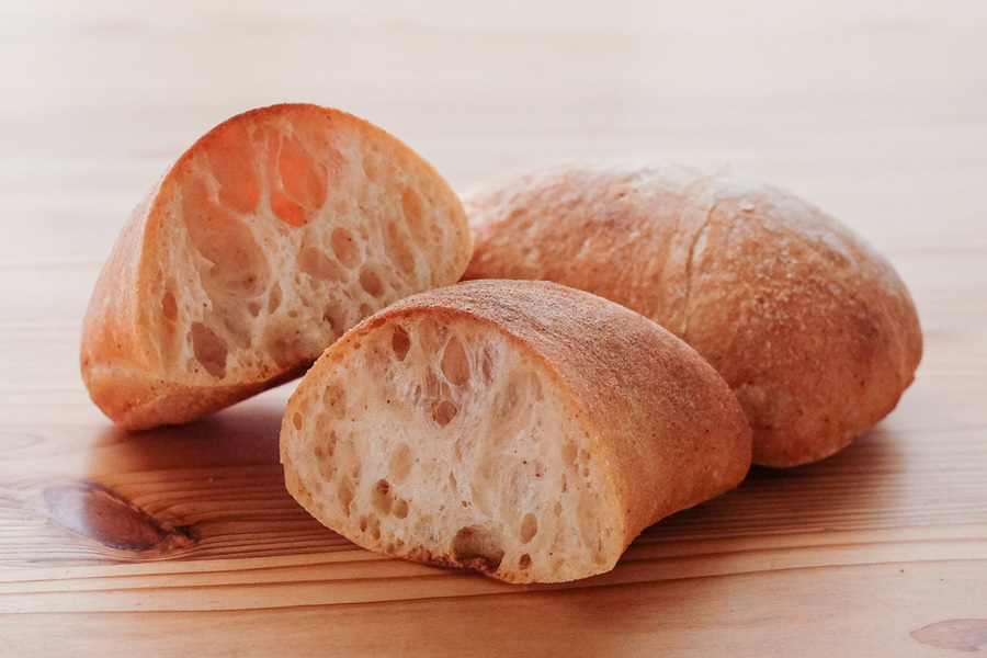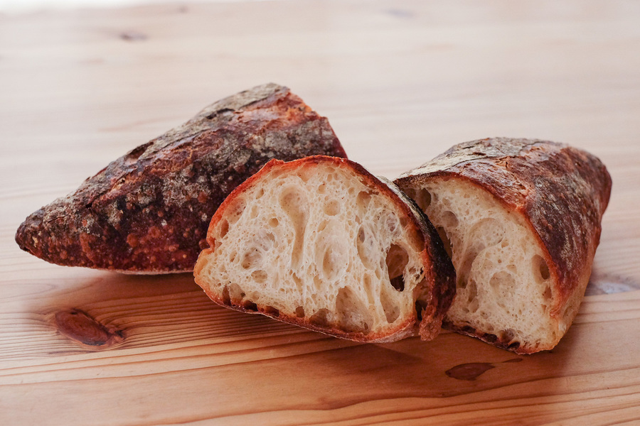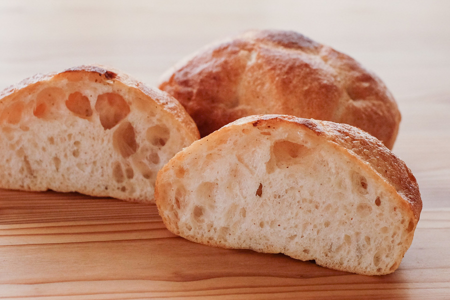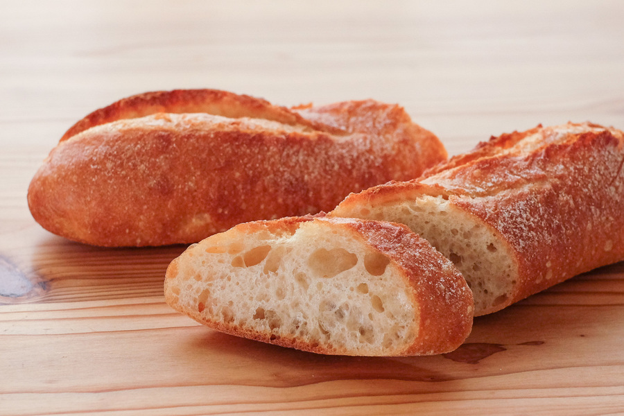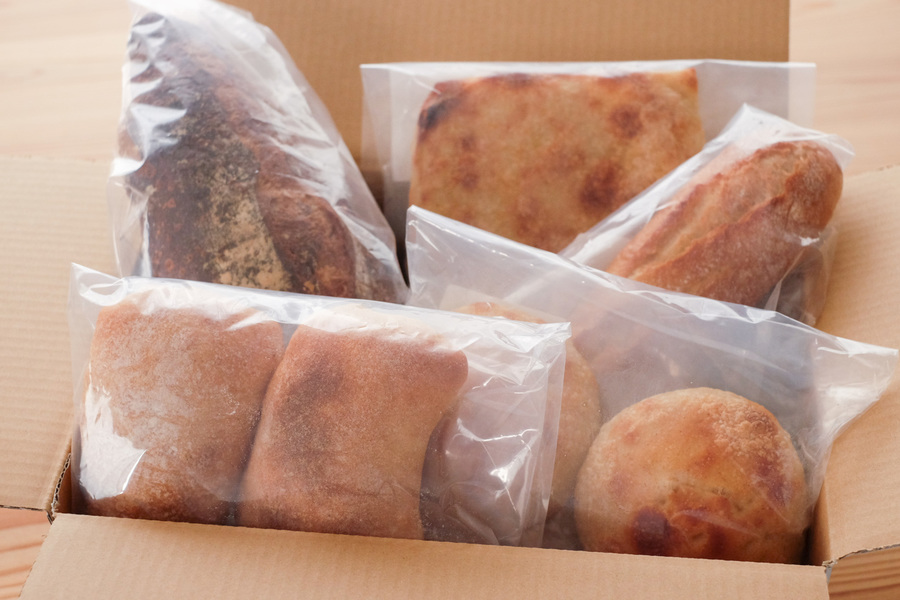 自然解凍後、あらかじめ余熱しておいたオーブンやトースターで温めてお召し上がりください。(※気温が上がってくる夏場は一晩冷蔵庫で解凍してください) パン全体に霧吹きなどで軽く水をかけてからトースターで3分~4分ほど加熱するとさっくり、もっちり出来たてのようになり美味しく召し上がれます。 厚みのあるパンや大きなパンはこげやすいのでカットしてから加熱してください。