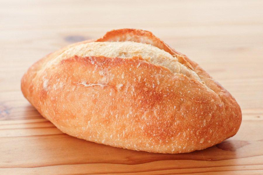 自然解凍後、あらかじめ余熱しておいたオーブンやトースターで温めてお召し上がりください。(※気温が上がってくる夏場は一晩冷蔵庫で解凍してください) パン全体に霧吹きなどで軽く水をかけてからトースターで3分~4分ほど加熱するとさっくり、もっちり出来たてのようになり美味しく召し上がれます。 厚みのあるパンは表面がこげやすいのでアルミホイルをかけて加熱してください。