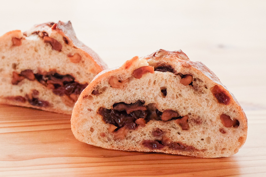王道で人気の胡桃とレーズンが入った熟成カンパーニュ。クルミとレーズンをたっぷり生地に練り込み焼き上げています。カンパーニュと相性抜群のレーズンと胡桃がぎっしり入っています。ずっしりと重みを感じるノアレザンをお楽しみいただけます。