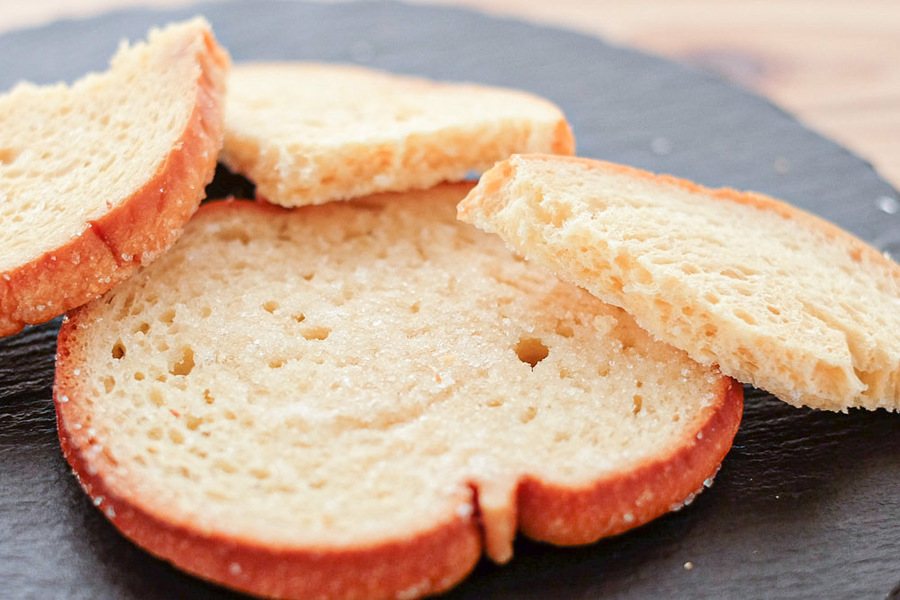 自然解凍後、あらかじめ余熱しておいたオーブンやトースターで温めてお召し上がりください。(※気温が上がってくる夏場は一晩冷蔵庫で解凍してください) パン全体に霧吹きなどで軽く水をかけてからトースターで3分~4分ほど加熱するとさっくり、もっちり出来たてのようになり美味しく召し上がれます。