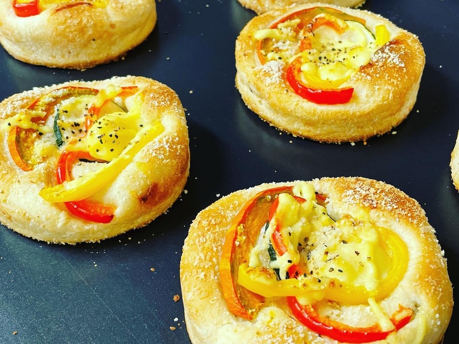 自然解凍後、あらかじめ余熱しておいたオーブンやトースターで温めてお召し上がりください。(※気温が上がってくる夏場は一晩冷蔵庫で解凍してください) パン全体に霧吹きなどで軽く水をかけてからトースターで3分~4分ほど加熱するとさっくり、もっちり出来たてのようになり美味しく召し上がれます。