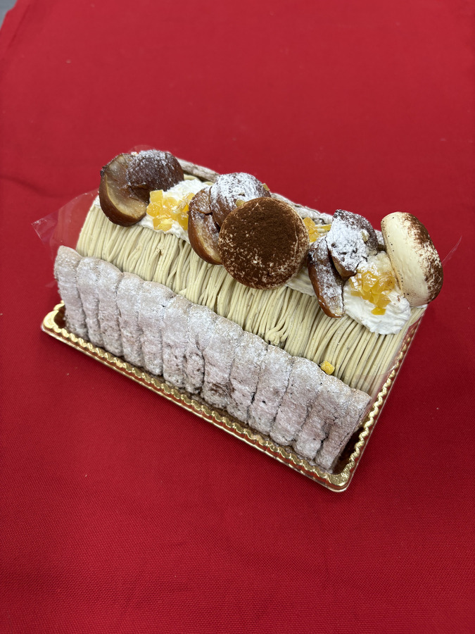 【ロールケーキ】 原材料名:栗ペースト(栗、砂糖)(茨城県製造)、白あん、スポンジケーキ、クリーム、乳等を主要原料とする食品(植物性油脂、乳製品)、マロンピューレ、栗渋皮煮(栗、砂糖)、バター、卵、砂糖、栗甘露煮、コーンスターチ、小麦粉、加糖練乳、卵白、粉糖、ココアパウダー、洋酒/乳化剤、膨張剤、増粘剤(乳化剤)、香料、酸化防止剤(V.E)、着色料(クチナシ色素)、漂白剤(亜硫酸塩)、安定剤(増粘多糖類)、(一部に小麦・卵・乳成分・大豆を含む) アレルゲン(7品目):卵,小麦,乳成分 ※アレルギーがご心配な方はご遠慮下さい。 ※原材料シールをご覧ください。 【栗きんとん】 さつま芋ペースト(茨城県製造)、栗甘露煮、砂糖、みりん、食塩/着色料(クチナシ)、グリシン、ミョウバン