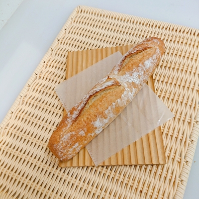 自然解凍後、あらかじめ余熱しておいたオーブンやトースターで温めてお召し上がりください。(※気温が上がってくる夏場は一晩冷蔵庫で解凍してください) パン全体に霧吹きなどで軽く水をかけてからトースターで3分~4分ほど加熱するとさっくり、もっちり出来たてのようになり美味しく召し上がれます。