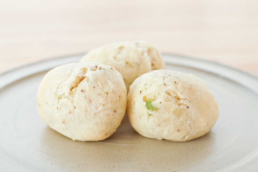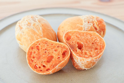 冷めると固くなってしまうため、お召し上がり前に600W のレンジで1個20秒前後温めると本来のもちもち食感を楽しむことができます。 また、さらにトースターで5分ほど温めると外はサクッ中はもちっの出来立てのような食感を味わえます。