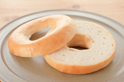 米粉パンを作るうえで難しいのが「しっとりした食感」でした。 丸パンの形で試作を続けていましたが、外側が乾燥しやすく内側が水分量が多くなってしまうというデメリットがありました。 パンの外側のぱさぱさ感をなくすべく何十回も試作を繰り返しましたが、丸パンだとなかなかうまくいかず自ましでした。 そこで中心が無いベーグル形にしたところ、全体に均等に水分がいきわたり中はしっとり外が香ばしいパンに仕上げることができました。 この米粉パンは”ベーグル”ではなく、しっとりを生み出すための究極の形です。 ベーグルの食べ方がわからない,ベーグルの食感は苦手,という方も全く問題ありません。 しっとりほんのり甘いベーグルの形をした飽きの来ない米粉パンですので、是非常備して日々の食卓でお楽しみください。