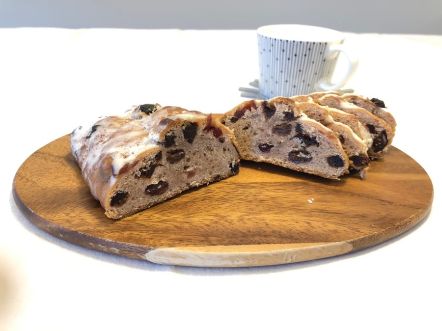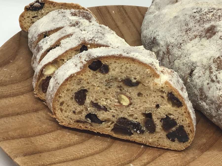 国内産小麦粉・オーガニックレーズン・低温殺菌牛乳・天然酵母(ごはん、長芋、りんご、人参)・よつばバター・甜菜糖・オーガニックドライフルーツ(いちじく、プルーン、なつめやし)・オーガニックアーモンド・ラム酒・香辛料・天日塩