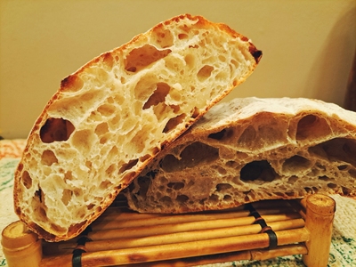 自然解凍後、あらかじめ余熱しておいたオーブンやトースターで温めてお召し上がりください。(※気温が上がってくる夏場は一晩冷蔵庫で解凍してください) パン全体に霧吹きなどで軽く水をかけてからトースターで3分~4分ほど加熱するとさっくり、もっちり出来たてのようになり美味しく召し上がれます。