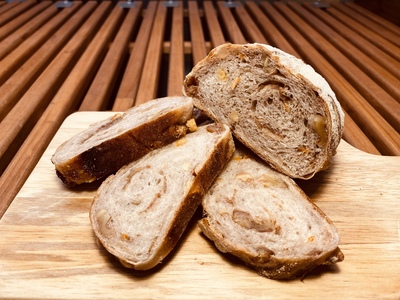 自然解凍後、あらかじめ余熱しておいたオーブンやトースターで温めてお召し上がりください。(※気温が上がってくる夏場は一晩冷蔵庫で解凍してください) パン全体に霧吹きなどで軽く水をかけてからトースターで3分~4分ほど加熱するとさっくり、もっちり出来たてのようになり美味しく召し上がれます。