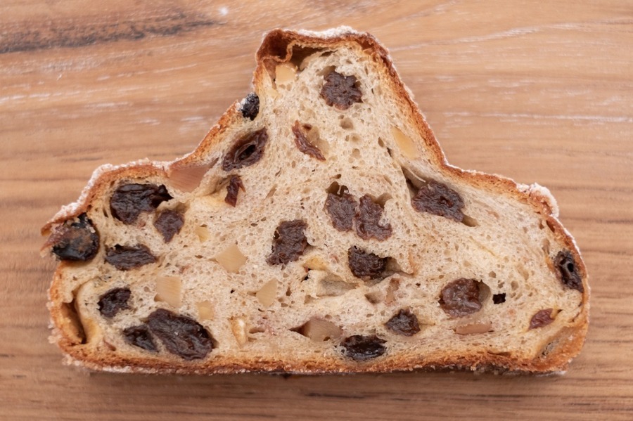 有機小麦粉・有機レーズン・砂糖・バター・平飼い卵・自家製天然酵母・ヨーグルト・レモン・牛乳・アーモンド・有機クルミ・レモンピール・オレンジピール・スパイス・塩・モルト アレルゲン 小麦粉 卵 乳成分