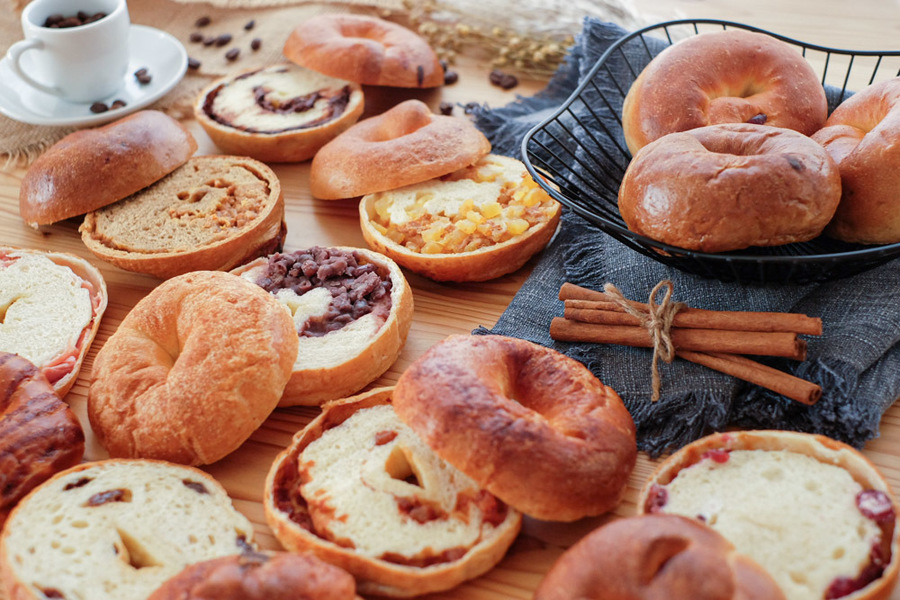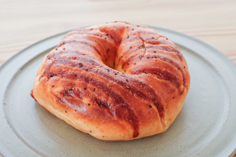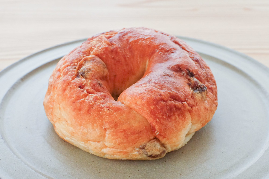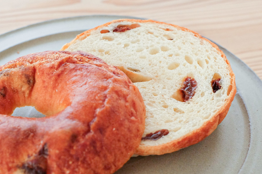 定番のシュガーのベーグルに大人なレーズンをたっぷりと加えました。 レーズンの香りが食欲をそそります。
