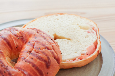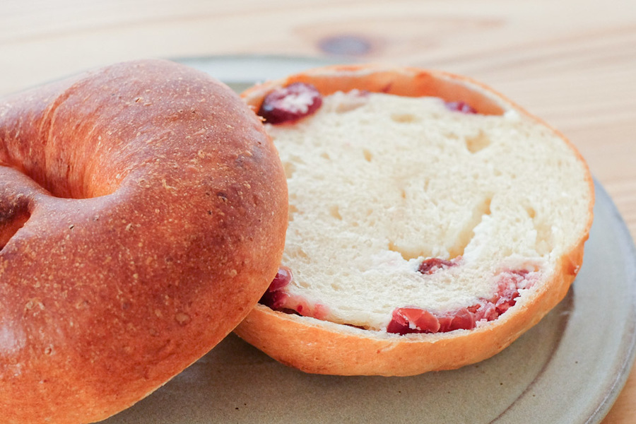 ベーグル×クリームチーズは定番の組み合わせ♪ 甘酸っぱいクランべりーをなめらかなクリームチーズのまろやかさが包み込みます。
