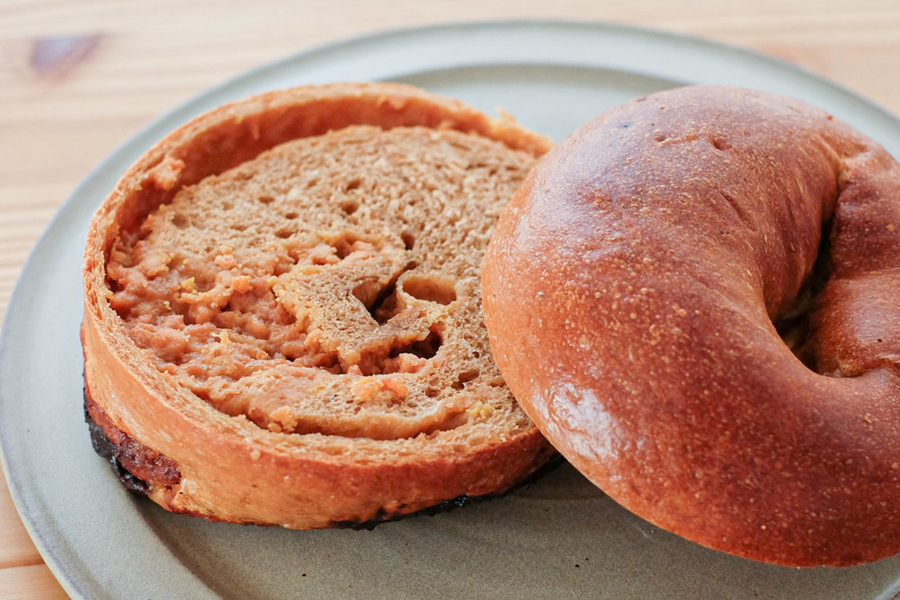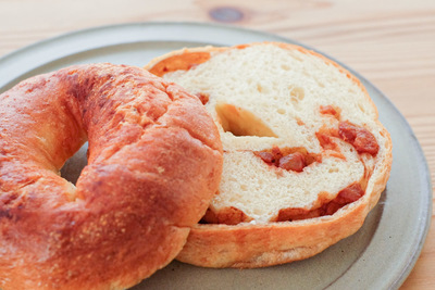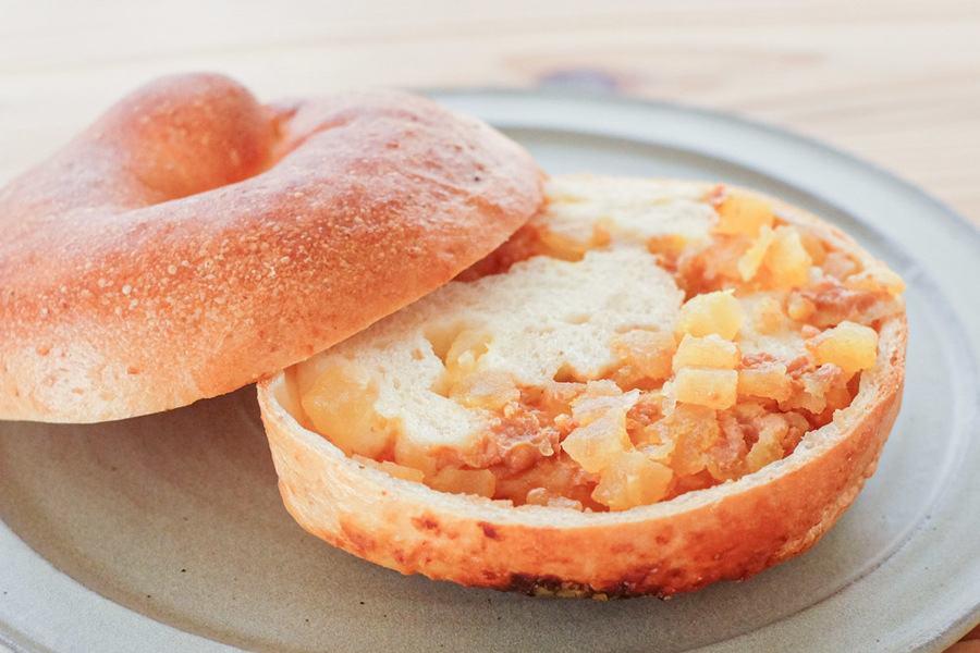 たっぷりの砂糖でじっくり煮込んだとろとろコンポートと甘いキャラメルの組み合わせはまるでスイーツのようなベーグルです。 おやつなどにぴったり♪