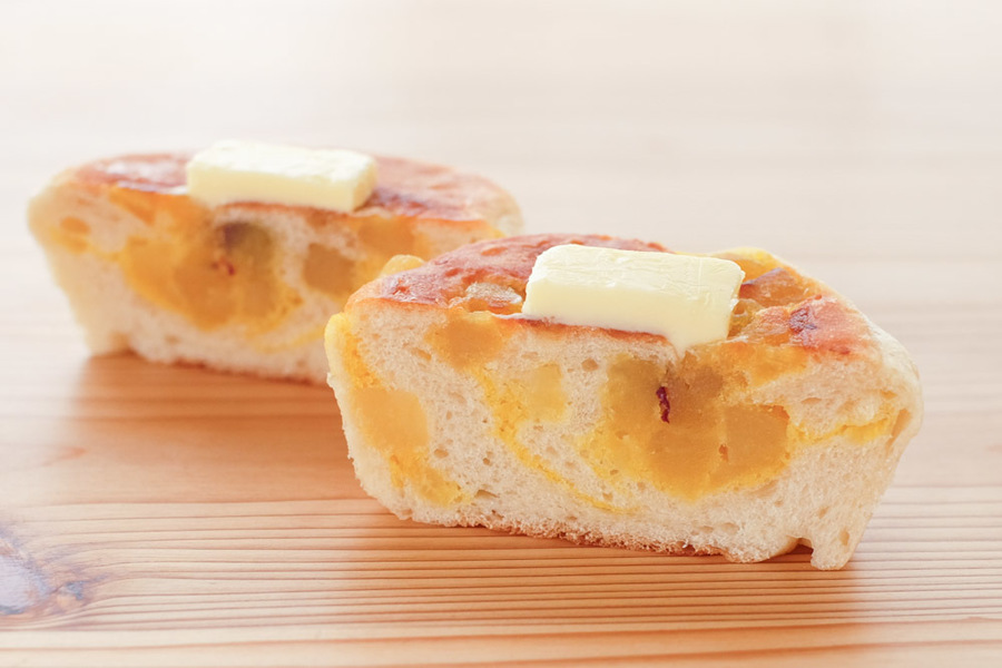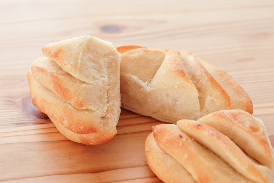 自然解凍後、あらかじめ余熱しておいたオーブンやトースターで温めてお召し上がりください。(※気温が上がってくる夏場は一晩冷蔵庫で解凍してください) パン全体に霧吹きなどで軽く水をかけてからトースターで3分~4分ほど加熱するとさっくり、もっちり出来たてのようになり美味しく召し上がれます。