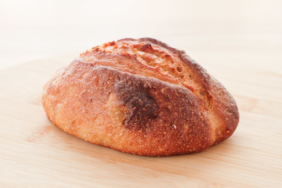 自然解凍後、あらかじめ余熱しておいたオーブンやトースターで温めてお召し上がりください。(※気温が上がってくる夏場は一晩冷蔵庫で解凍してください) パン全体に霧吹きなどで軽く水をかけてからトースターで3分~4分ほど加熱するとさっくり、もっちり出来たてのようになり美味しく召し上がれます。 厚みのあるパンは表面がこげやすいのでアルミホイルをかけて加熱してください。