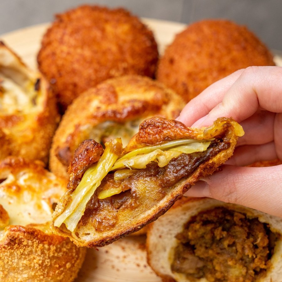 ・牛すじたっぷりカレーパン × 3個 ・チーズカレーパン 〜キャベツつつみ〜 × 3個