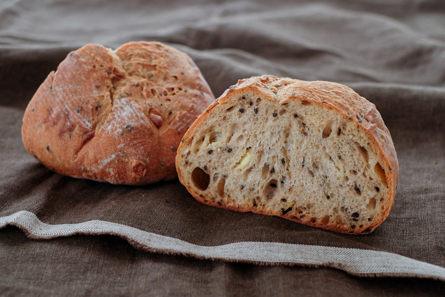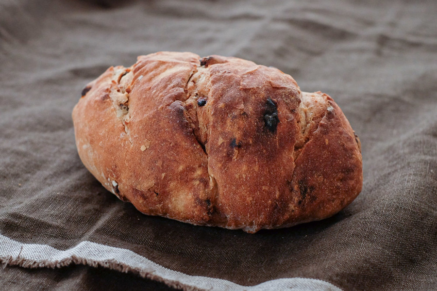 自然解凍後、あらかじめ予熱しておいたオーブンやトースターで温めてお召し上がりください。(※気温が上がってくる夏場は一晩冷蔵庫で解凍してください) パン全体に霧吹きなどで軽く水をかけてからトースターで2分~4分ほど加熱するとさっくり、出来たてのようになり美味しく召し上がれます。