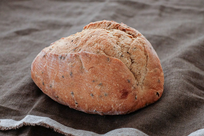 4種のお食事パン4個が入ります。 以下の2種は必ず入ります。 ●カンパーニュ全粒粉 1個 ●カンパーニュくるみ 1個 その他 いずれか2種のお食事パンが2個入ります。 ●カンパーニュレーズンクランベリー ●カンパーニュチーズごま ●ミルクハースチョコチップ ●季節のパン パンの大きさ 長さ 約15㎝~17㎝/高さ 約6㎝~7㎝/幅 約11㎝~12㎝ ※スライスはせずにお送りいたします。