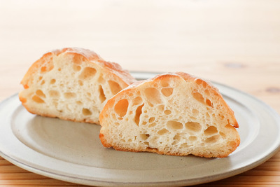 自然解凍後、あらかじめ予熱しておいたオーブンやトースターで温めてお召し上がりください。(※気温が上がってくる夏場は一晩冷蔵庫で解凍してください) パン全体に霧吹きなどで軽く水をかけてからトースターで3分~4分ほど加熱するとさっくり、もっちり出来たてのようになり美味しく召し上がれます。 厚みのあるパンは表面がこげやすいのでアルミホイルをかけて加熱してください。