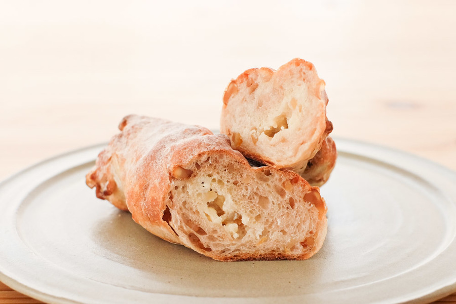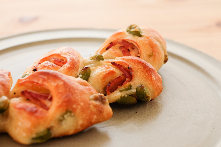 自然解凍後、あらかじめ予熱しておいたオーブンやトースターで温めてお召し上がりください。(※気温が上がってくる夏場は一晩冷蔵庫で解凍してください) パン全体に霧吹きなどで軽く水をかけてからトースターで3分~4分ほど加熱するとさっくり、もっちり出来たてのようになり美味しく召し上がれます。 厚みのあるパンは表面がこげやすいのでアルミホイルをかけて加熱してください。