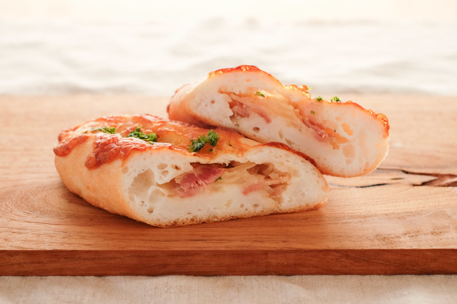 自然解凍後、あらかじめ予熱しておいたオーブンやトースターで温めてお召し上がりください。(※気温が上がってくる夏場は一晩冷蔵庫で解凍してください) パン全体に霧吹きなどで軽く水をかけてからトースターで3分~4分ほど加熱するとさっくり、もっちり出来たてのようになり美味しく召し上がれます。 厚みのあるパンは表面がこげやすいのでアルミホイルをかけて加熱してください。