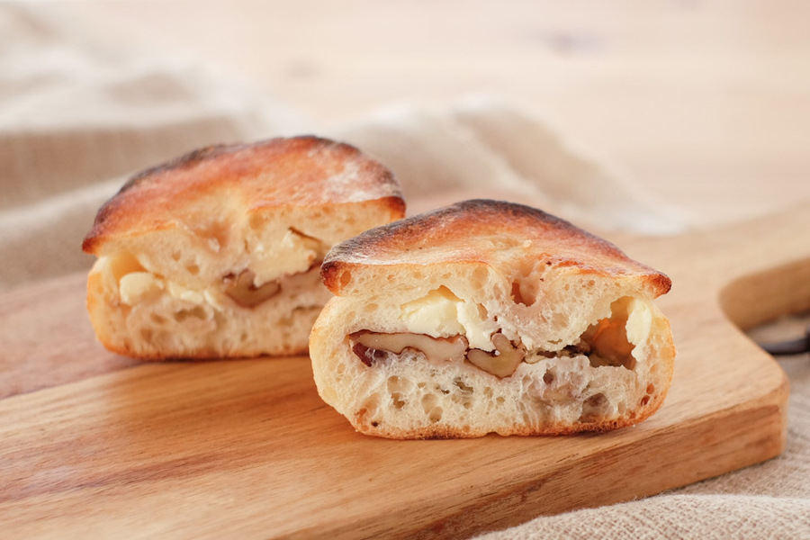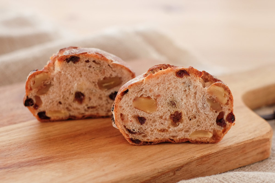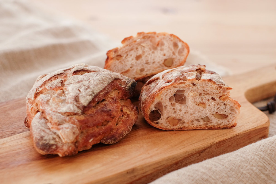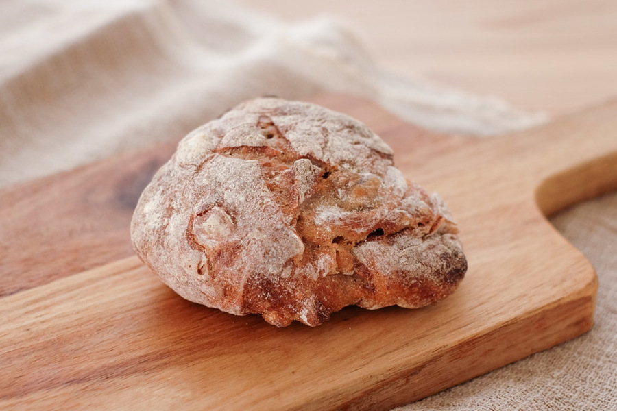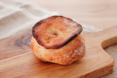 自然解凍後、あらかじめ予熱しておいたオーブンやトースターで温めてお召し上がりください。(※気温が上がってくる夏場は一晩冷蔵庫で解凍してください) パン全体に霧吹きなどで軽く水をかけてからトースターで3分~4分ほど加熱するとさっくり、もっちり出来たてのようになり美味しく召し上がれます。 厚みのあるパンは表面がこげやすいのでアルミホイルをかけて加熱してください。