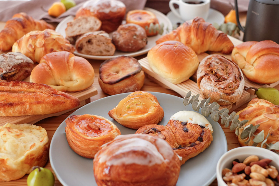 ザクザクデニッシュやハード系のパンや総菜系のパンが入るおまかせセット