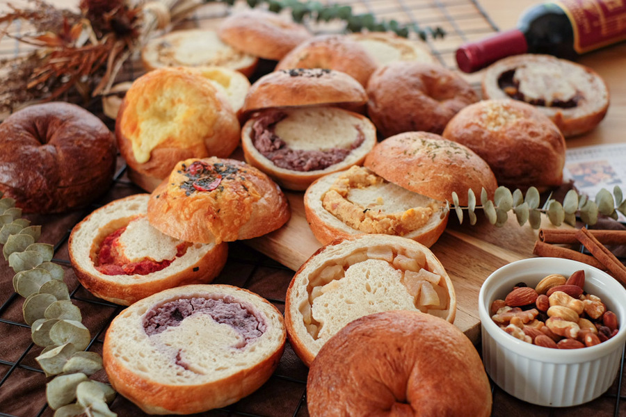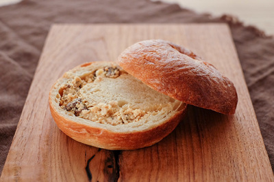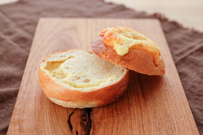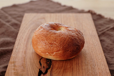 電子レンジで温めて解凍後、あらかじめ予熱しておいたオーブンやトースターで焼いていただくと表面はパリっと、中はもちもちに仕上がります。(※表面がお砂糖のベーグルは自然解凍がおすすめです)