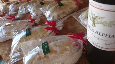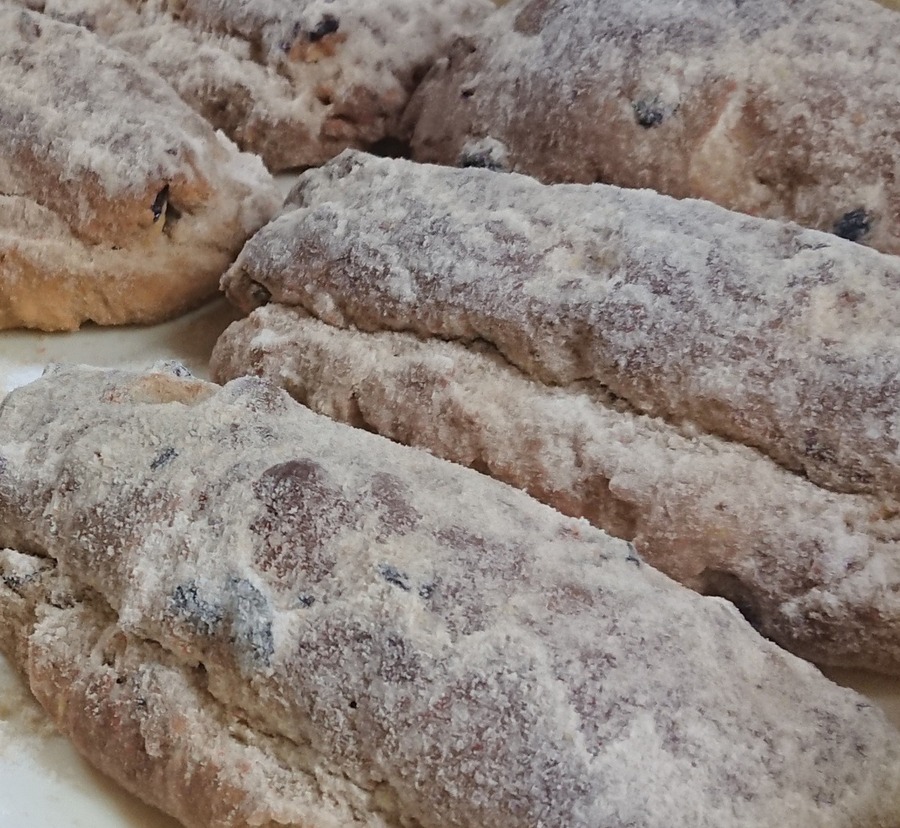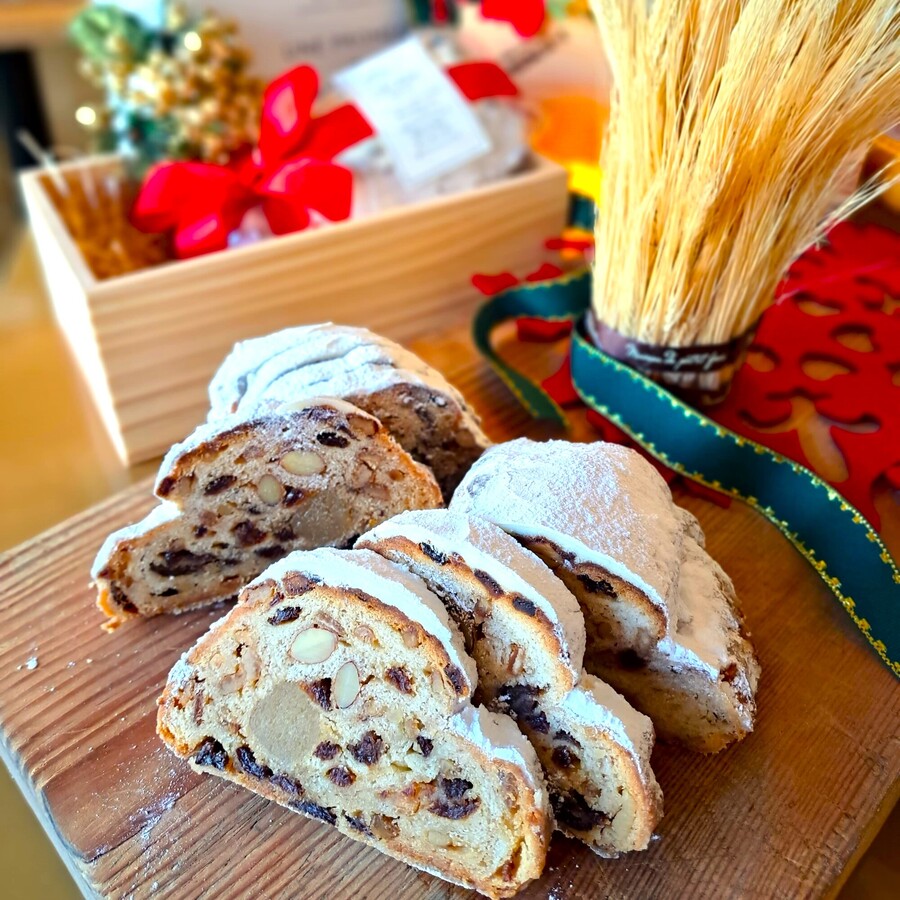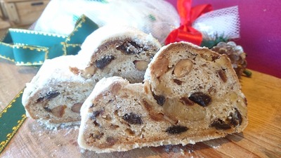 小麦粉(国産小麦粉)、バター、砂糖(上白糖、きび砂糖、粉砂糖)、レーズン、オレンジピール、レモンピール、くるみ、アーモンド、牛乳、パン酵母、自然塩、赤ワイン、ラム酒、ブランデー アレルゲン(8品目):小麦・乳成分・くるみ 【卵は使用していません】 ※アレルギーがご心配な方はご遠慮下さい。
