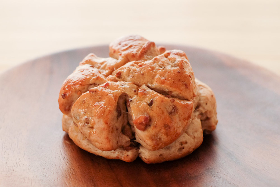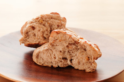 自然解凍後、あらかじめ予熱しておいたオーブンやトースターで温めてお召し上がりください。(※気温が上がってくる夏場は一晩冷蔵庫で解凍してください) パン全体に霧吹きなどで軽く水をかけてからトースターで3分~4分ほど加熱するとさっくり、もっちり出来たてのようになり美味しく召し上がれます。