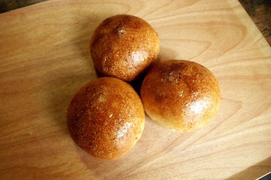 自然解凍後、あらかじめ予熱しておいたオーブンやトースターで温めてお召し上がりください。(※気温が上がってくる夏場は一晩冷蔵庫で解凍してください) パン全体に霧吹きなどで軽く水をかけてからトースターで3分~4分ほど加熱するとさっくり、もっちり出来たてのようになり美味しく召し上がれます。 フライパンで焼くのも美味しいものです。蓋をして焼けば乾燥焼きをふせげます。また、固くなったパンを蒸すと、もちもちと柔らかくなりまた違った食感で美味しく召し上がれます。