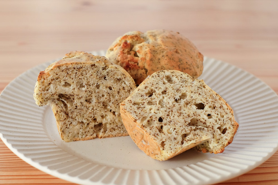 自然解凍後、あらかじめ予熱しておいたオーブンやトースターで温めてお召し上がりください。(※気温が上がってくる夏場は一晩冷蔵庫で解凍してください) パン全体に霧吹きなどで軽く水をかけてからトースターで3分~4分ほど加熱するとさっくり、もっちり出来たてのようになり美味しく召し上がれます。