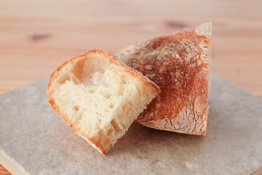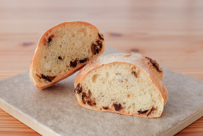自然解凍後、あらかじめ予熱しておいたオーブンやトースターで温めてお召し上がりください。(※気温が上がってくる夏場は一晩冷蔵庫で解凍してください) パン全体に霧吹きなどで軽く水をかけてからトースターで3分~4分ほど加熱するとさっくり、もっちり出来たてのようになり美味しく召し上がれます。 厚みのあるパンは表面がこげやすいのでアルミホイルをかけて加熱してください。