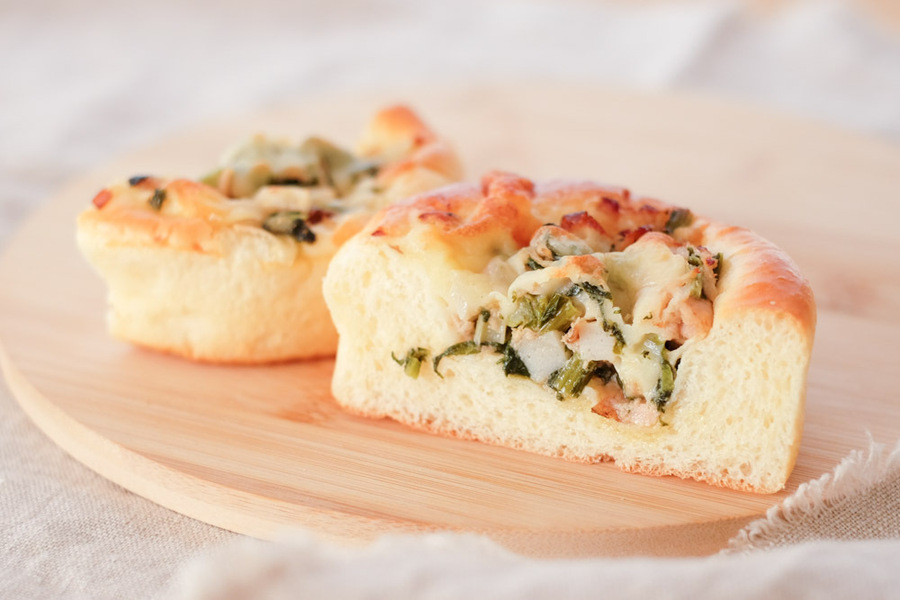 自然解凍後、あらかじめ予熱しておいたオーブンやトースターで温めてお召し上がりください。(※気温が上がってくる夏場は一晩冷蔵庫で解凍してください) パン全体に霧吹きなどで軽く水をかけてからトースターで3分~4分ほど加熱するとさっくり、もっちり出来たてのようになり美味しく召し上がれます。
