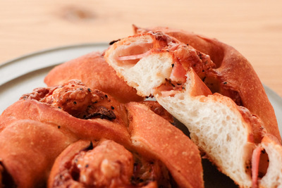 自然解凍後、あらかじめ予熱しておいたオーブンやトースターで温めてお召し上がりください。(※気温が上がってくる夏場は一晩冷蔵庫で解凍してください) パン全体に霧吹きなどで軽く水をかけてからトースターで3分~4分ほど加熱するとさっくり、もっちり出来たてのようになり美味しく召し上がれます。