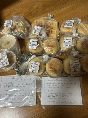 発送時にまたメッセージをいただき、各商品の食べ方と「たくさん焼いてしまいましたので」ということで、いくつかのおまけを付けてくださる連絡もありました。