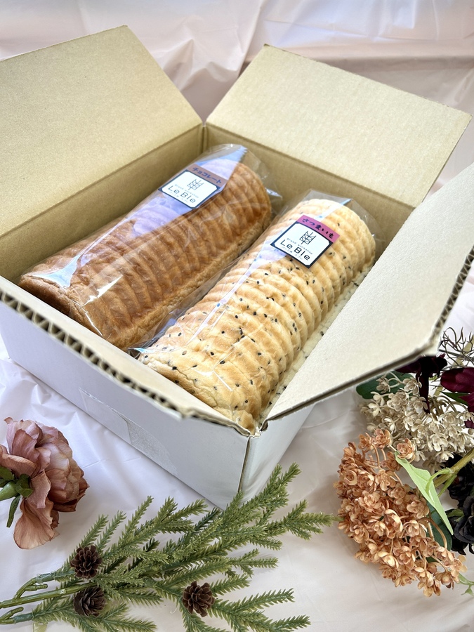 お選びいただいた2本を、パン工房LeBle(ルブレ)のオリジナル箱に詰め合わせて発送させていただきます。