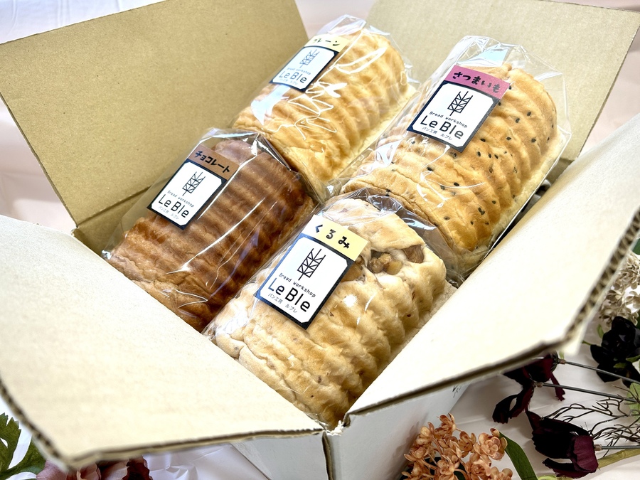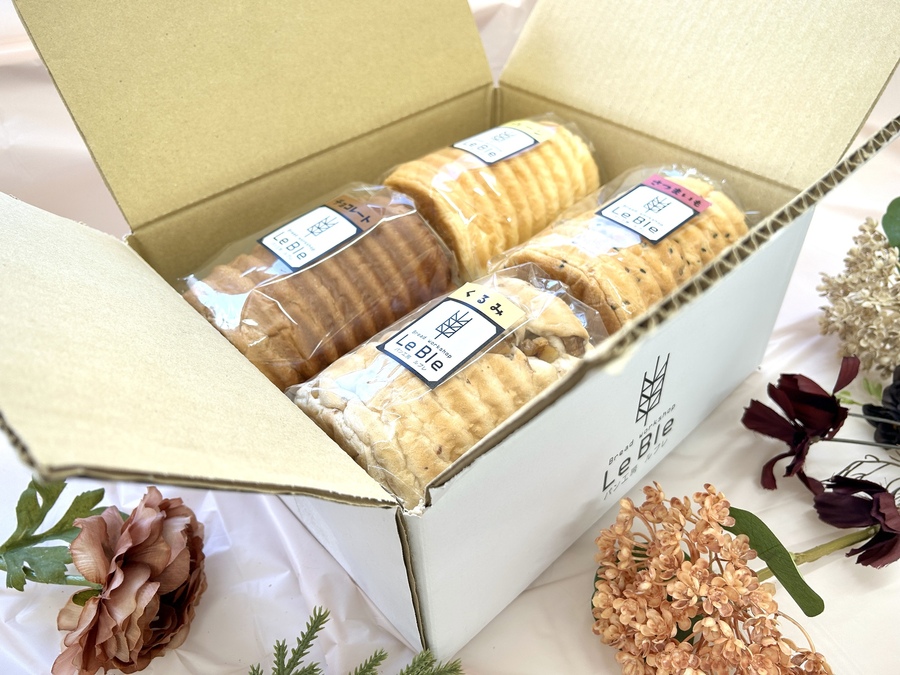 お選びいただいた4個を、パン工房LeBle(ルブレ)のオリジナル箱に詰め合わせて発送させていただきます。