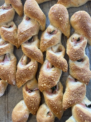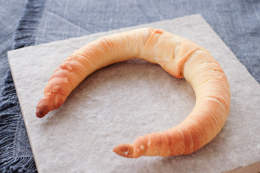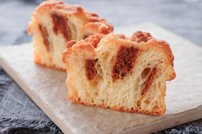 自然解凍後、あらかじめ予熱しておいたオーブンやトースターで温めてお召し上がりください。(※気温が上がってくる夏場は一晩冷蔵庫で解凍してください) パン全体に霧吹きなどで軽く水をかけてからトースターで3分~4分ほど加熱するとさっくり、もっちり出来たてのようになり美味しく召し上がれます。