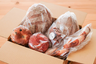 カンパーニュが必ず1つ入ります。(ロスの状況により2つ入ることもあります) ※カンパーニが1つの場合は、その他に7~8個のパンが入ります。 ※カンパーニュが2つの場合は、その他に4~5個のパンが入ります。 ※個数はパンの大きさにより前後します。 ※カンパーニュはスライス無しでお届けします。 ※焼き菓子が入ることもあります。