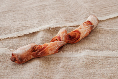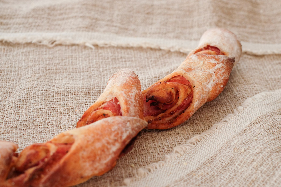 自然解凍後、あらかじめ予熱しておいたオーブンやトースターで温めてお召し上がりください。(※気温が上がってくる夏場は一晩冷蔵庫で解凍してください) パン全体に霧吹きなどで軽く水をかけてからトースターで3分~4分ほど加熱するとさっくり、もっちり出来たてのようになり美味しく召し上がれます。