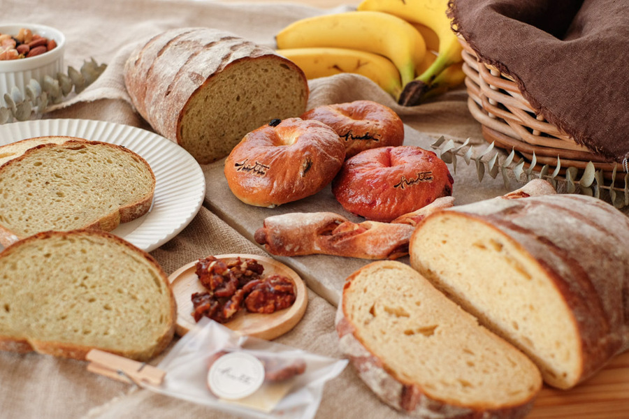 主な原材料:小麦粉、小麦全粒粉、甜菜糖、豆乳クリーム、豆乳、大豆粉、藻塩、パン酵母 他 アレルゲン(8品目):小麦・卵・乳成分・くるみ ケールカンパーニュ(商品一例):小麦粉、小麦全粒粉、甜菜糖、ケール、豆乳クリーム、豆乳、大豆粉、藻塩、パン酵母 ベーコンエピ(商品一例):小麦粉、小麦全粒粉、ベーコン、甜菜糖、豆乳クリーム、豆乳、大豆粉、藻塩、香辛料、パン酵母/酸化防止剤(ビタミンC)、発色剤(亜硝酸Na) ※アレルギーがご心配な方はご遠慮下さい。 ※各パンに原材料表示シールを貼付します。