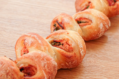 自然解凍後、あらかじめ予熱しておいたオーブンやトースターで温めてお召し上がりください。(※気温が上がってくる夏場は一晩冷蔵庫で解凍してください) パン全体に霧吹きなどで軽く水をかけてからトースターで2分~3分ほど加熱するとさっくり、もっちり出来たてのようになり美味しく召し上がれます。