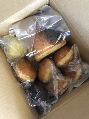 マラサダ食パン1個、マラサダ(裸の王様2個、カスタードクリーム1個、きなここしあん1個、ハウピアクリーム1個、ピロシキ1個) マナプア1個 合計8個入ります。