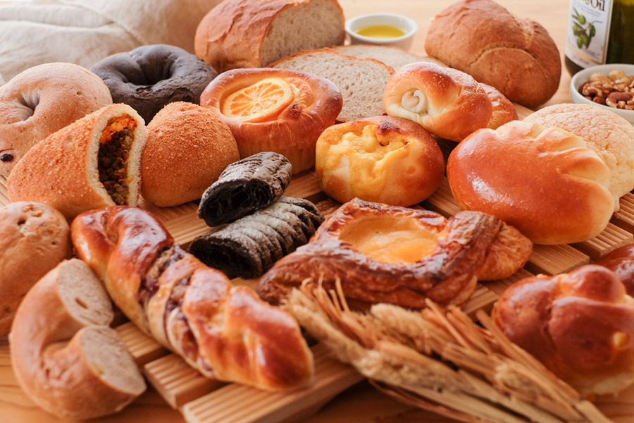 主な原材料:小麦粉、マーガリン、ショートニング、豆乳などを主原料とする食品、砂糖、卵、脱脂粉乳、加糖練乳、パン酵母、食塩/乳化剤、pH調整剤 アレルゲン(8品目):小麦・卵・乳成分・くるみ ベーグルブルーベリー(商品一例):小麦粉(国内製造)、糖漬ブルーベリー、ブルーベリーソース、砂糖、小麦タンパク、パン酵母、食塩、糖蜜液、酵母エキス/増粘剤(加工澱粉、増粘多糖類)、調味料、香料、ビタミンC、酵素 あんぱん(商品一例):小倉あん(国内製造)、小麦粉、くるみ、砂糖、卵、ショートニング、加糖練乳、豆乳などを主原料とする食品、パン酵母、食塩/pH調整剤、乳化剤、ビタミンC、着色料(アナトー、カロチン)、酸化防止剤(V.E)、香料 ※アレルギーがご心配な方はご遠慮下さい。 ※各パンに原材料表示シールを貼付します。 ※添加物を含む食材を使用したパンがあります。