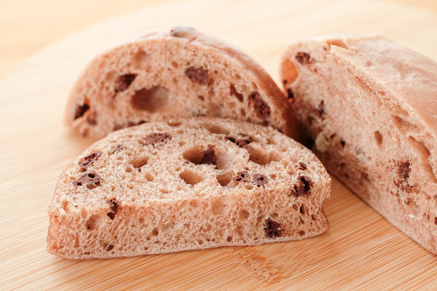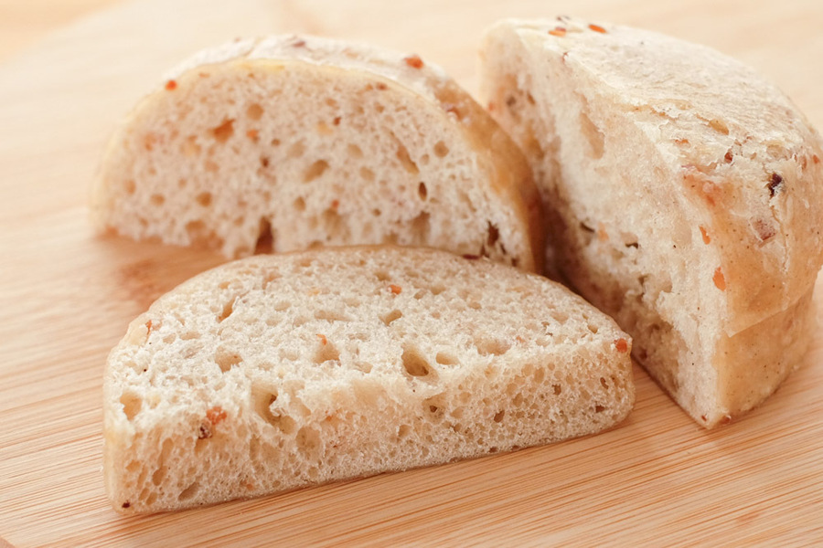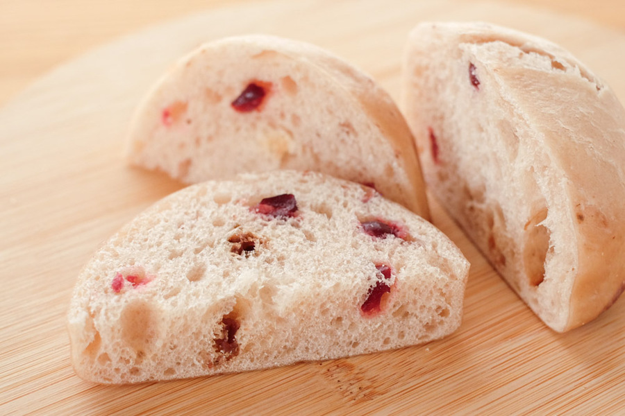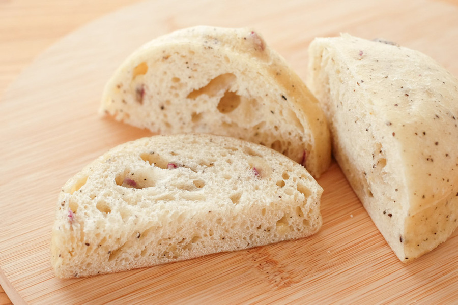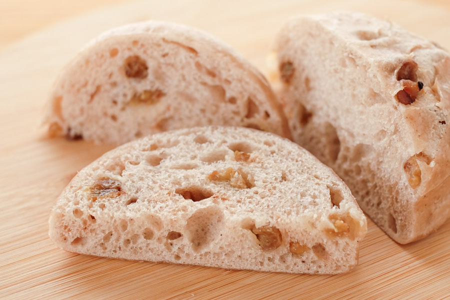 自然解凍後、あらかじめ余熱しておいたオーブンやトースターで温めてお召し上がりください。(※気温が上がってくる夏場は一晩冷蔵庫で解凍してください) パン全体に霧吹きなどで軽く水をかけてからトースターで3分~4分ほど加熱するとさっくり、もっちり出来たてのようになり美味しく召し上がれます。