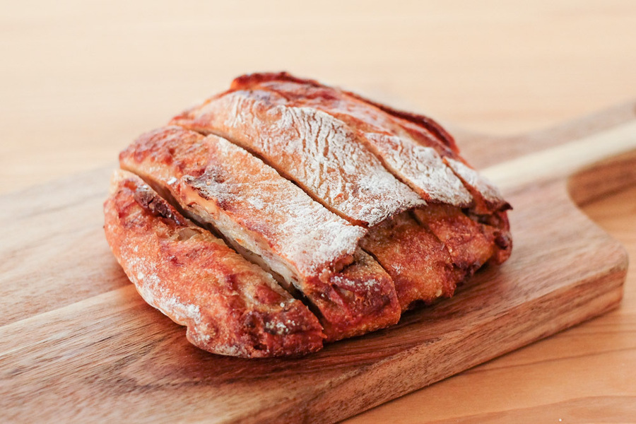 自然解凍後、あらかじめ予熱しておいたオーブンやトースターで温めてお召し上がりください。(※気温が上がってくる夏場は一晩冷蔵庫で解凍してください) パン全体に霧吹きなどで軽く水をかけてからトースターで3分~4分ほど加熱するとさっくり、もっちり出来たてのようになり美味しく召し上がれます。 厚みのあるパンは表面がこげやすいのでアルミホイルをかけて加熱してください。